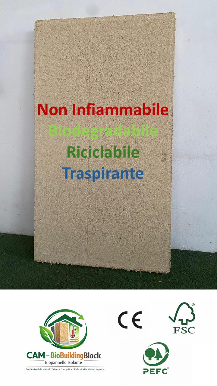 L’innovativo biopannello isolante BioBuildingBlock supera queste criticità, risultando non infiammabile, privo di emissioni di fumo e totalmente sostenibile e riciclabile, garantendo al contempo elevate prestazioni di isolamento termico e acustico.