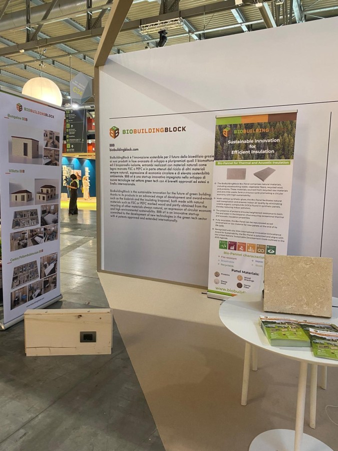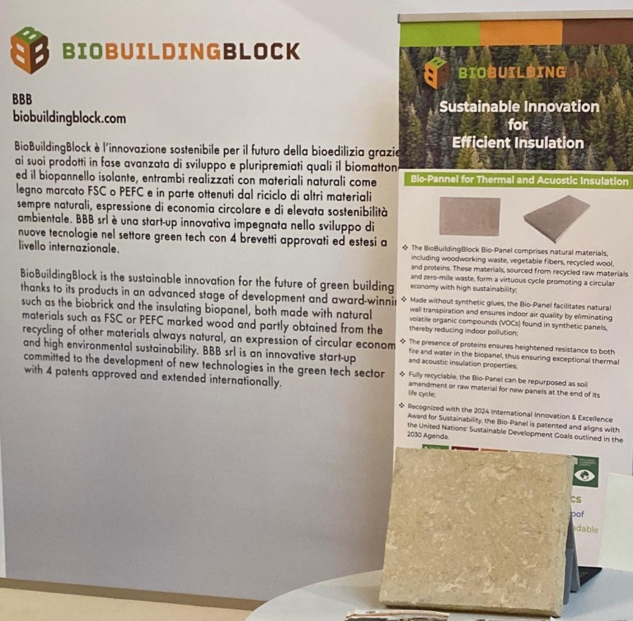Salone del mobile 2024 Milano! BBB srl unica Start Up innovativa della realtà italiana selezionata insieme ad altre 3 PMI dal Ministero degli affari esteri e della cooperazione internazionale e del Made in Italy con ITA. Un importante riconoscimento per il valore legato alla sostenibilità dei progetti della giovane Start Up per presentare il bio-mattone e il pannello isolante BioBuildingBlock in una vetrina internazionale come il salone del mobile. Materiali naturali per una perfetta sintonia e benessere della persona che sceglie BioBuildingBlock per innovazione e rispetto per la natura