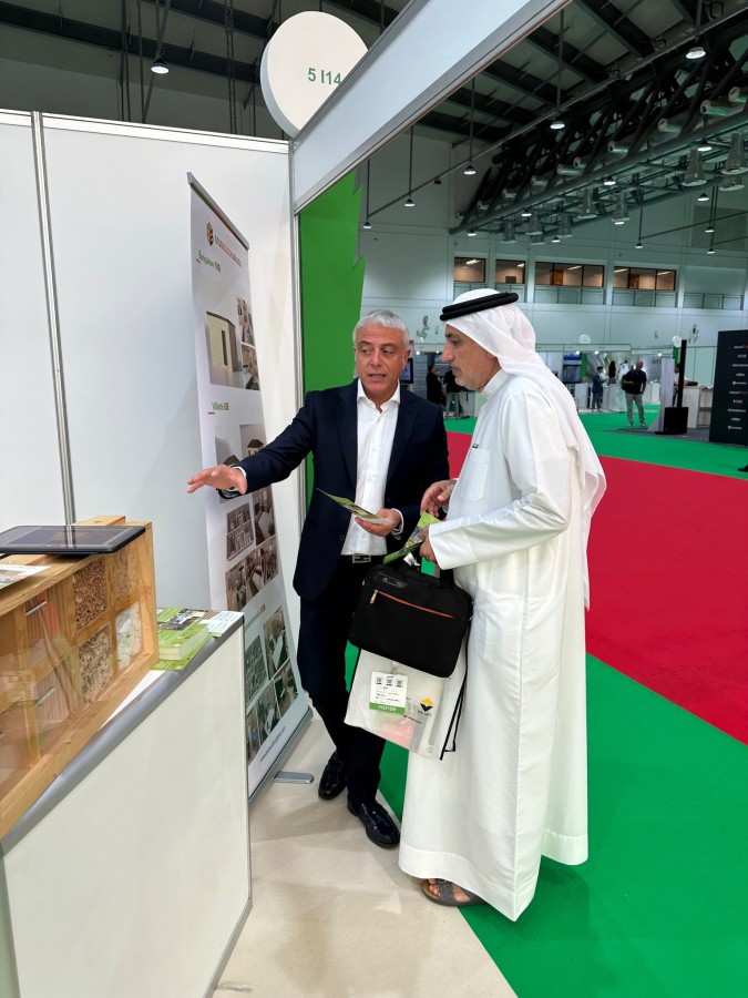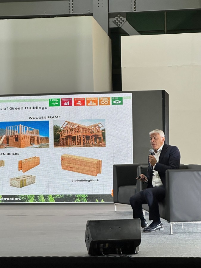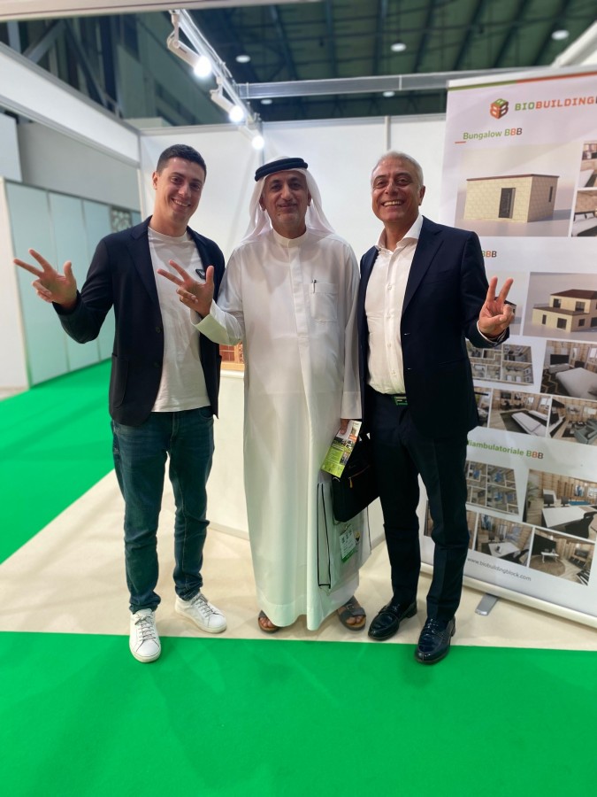 Incontro espositivo nel contesto internazionale degli emirati arabi uniti. BBB unica protagonista col bio mattone in legno e barre di acciaio che ha rappresentato una vera innovazione disruptive per il mondo delle costruzioni negli Emirati Arabi Uniti. Il CEO Marco Citro ha presentato in dettaglio le caratteristiche tecniche del bio mattone BioBuildingBlock